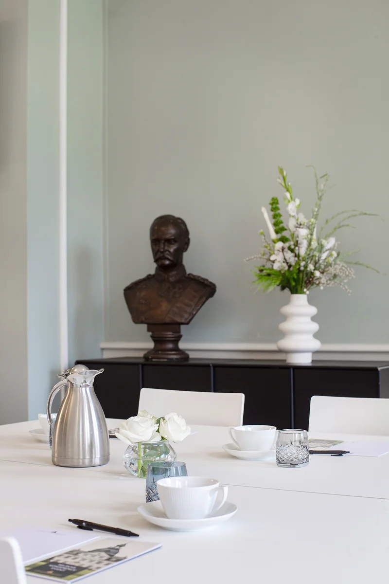 Her mødes direktioner, projektteams og kunder i klassiske sale med nutidens komfort: fleksible opsætninger, high speed Wi-Fi, moderne AV og lækker forplejning.